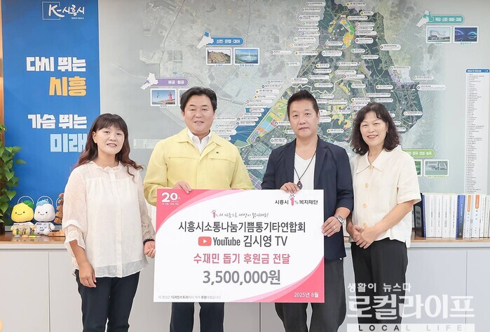 [시흥=로컬라이프] 송준형 기자 = 가수 김시영 씨와 시흥시소통나눔기쁨통기타연합회가 시흥시에 수재민 돕기 후원금을 기탁했다.
