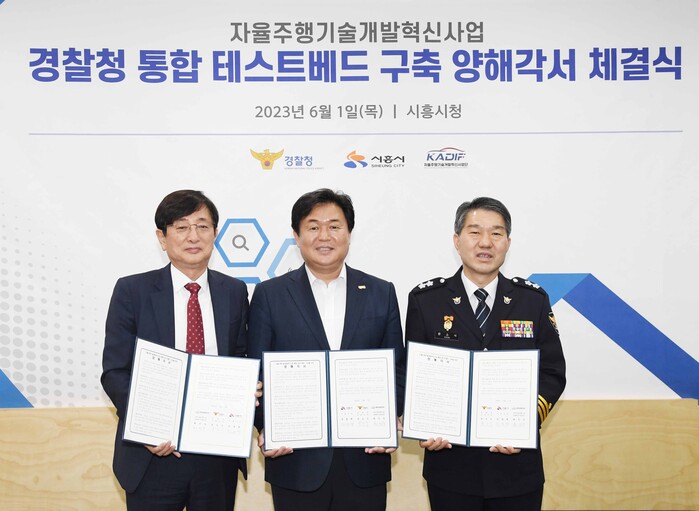 시흥시(시장 임병택)는 1일 시청 다슬방에서 자율주행기술개발혁신사업의 경찰청(청장 윤희근) 소관 과제 통합 테스트베드 구축을 위해 경찰청, 자율주행기술개발혁신사업단(사업단장 최진우)과 양해각서를 체결했다.
