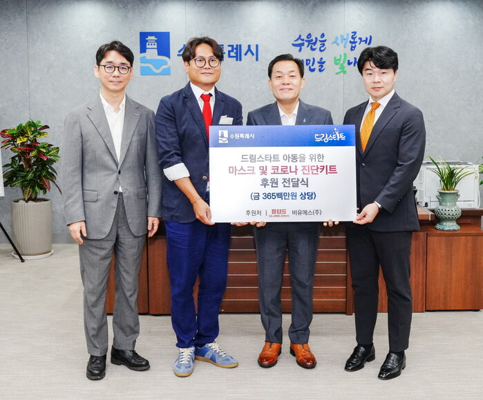 비유에스(주)가 “수원시 취약계층 아동에게 전달해 달라”며 월드비전 경기남부사업본부에 마스크·코로나19 진단키트 등 3억 6500만 원 상당 물품을 후원했다.