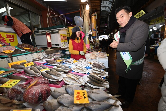 이날 이재준 시장은 미나리광‧못골종합시장에서 고기류, 과일, 건어물, 인삼, 만두, 전 등 명절 음식을 온누리 상품권으로 구매하고, 상인들을 격려했다.