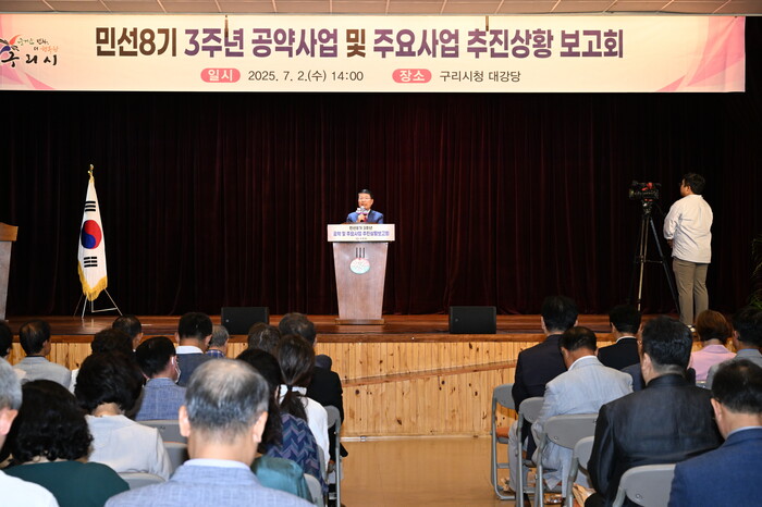 구리시(시장 백경현)는 2일 시청 대강당에서 ‘민선8기 3주년 공약 및 주요사업 추진상황 보고회’를 개최했다.