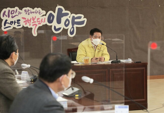 사진/시장 업무보고회(21. 1) (사진제공=안양시)