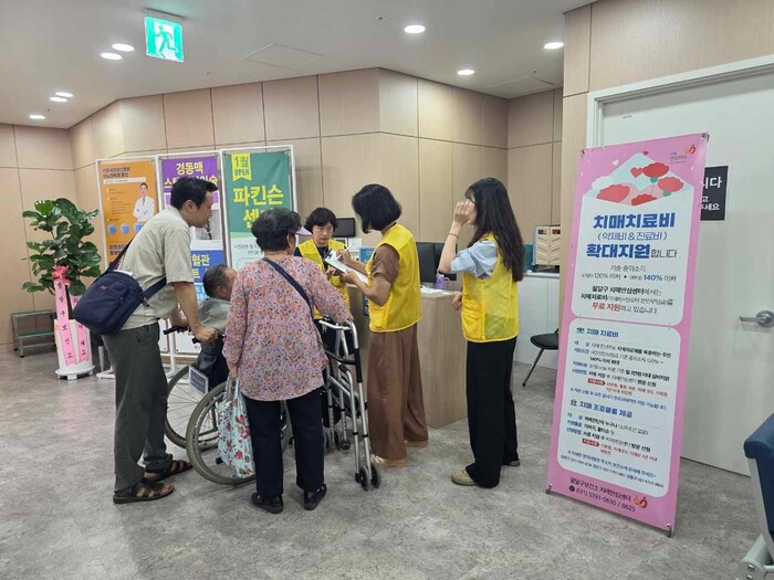 병원을 찾은 환자, 치매환자에게 ▲치매치료관리비(약제비·진료비) 지원 안내(건강보험료 기준 중위소득 140% 이하) ▲치매환자 조호물품(기저귀·물티슈 등) 지원 상담 ▲치매가족돌봄 안심휴가지원사업, 배회인식표 제공, 가족 프로그램 운영 등 다양한 치매환자 관련 서비스를 홍보할 예정이다.