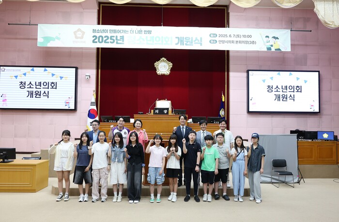 안양시의회(의장 박준모)는 지난 6월 7일(토) 오전 10시 시의회 본회의장에서 「2025년 청소년의회 개원식」을 개최했다. 청소년의회는 미래 세대의 민주시민 의식을 높이고 지역 의정 참여 기회를 확대하기 위해 마련됐으며, 이날 개원식에는 청소년의회 의원 16명을 비롯해 안양시 시의원과 학부모, 지역 주민 등이 참석했다.