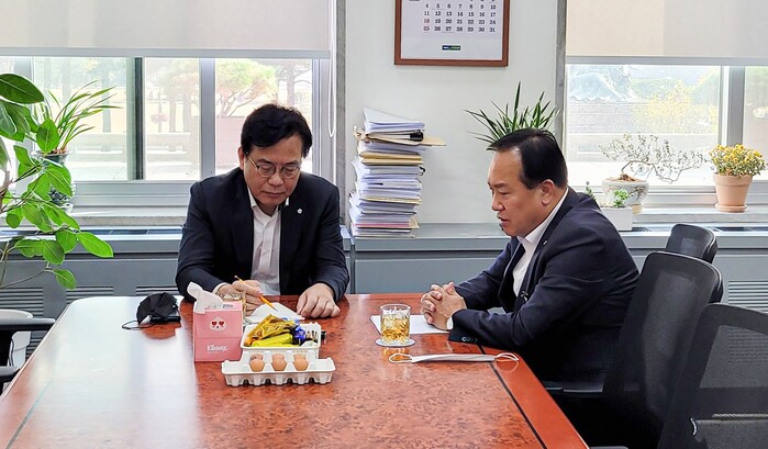 시에 따르면 이권재 오산시장은 8일 국민의힘 원내 수석 부대표 송언석 국회의원과의 면담에서 산적해 있는 투자사업 중 시민 숙원사업인 경부선철도 횡단도로 건설사업, 하수관로 정비사업, 오산 국민체육센터 건립, 궐동 제3공영주차장 건설, 가장천 생태하천 복원사업에 대한 국비 지원을 건의했다.