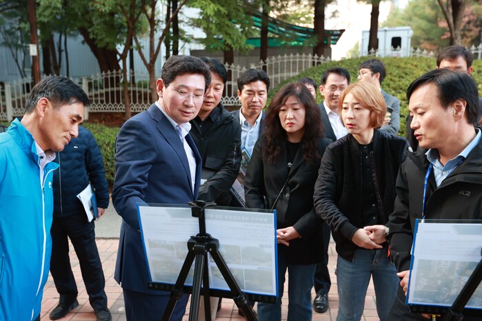 이상일 용인특례시장은 25일 오후 기흥구 동백동 백현초등학교, 보정동 성호샤인힐즈 아파트, 소현초등학교, 소현중학교 일대를 방문해 학교와 아파트 주변의 환경을 개선하는 방안을 주민 등과 논의했다.