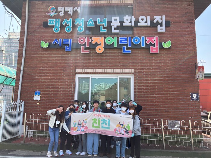 신.구 세대의 교류를 통하여 어르신 세대의 전통적 삶의 방식을 이해하는 소통의 장을 마련한다는 동아리 설립목적을 가진 대학생 봉사동아리 ‘친친’(이하 친친)은 팽성노인복지관과 연계해 스마트폰 교육에 참여하여 어르신들이 스마트폰 사용법을 익혀 수월하게 사용하실 수 있도록 도움을 제공하였다. 또한, 환경 보호와 지역 주민이 쾌적한 환경에서의 생활을 위해 팽성읍 내 주택가 및 농성공원으로 플로깅 봉사활동을 진행했다.