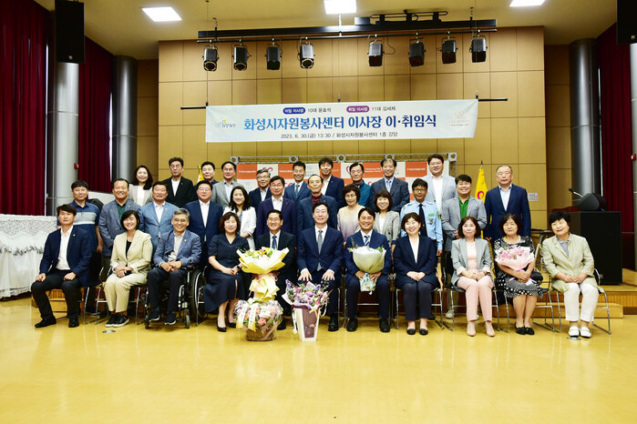 30일 화성시자원봉사센터 대강당에서 개최된 이취임식에는 정명근 화성시장을 비롯하여 윤효석 제10대 이사장, 김세제 신임 이사장 등 100여 명이 참석한 가운데 공로패 전달, 임명장 수여 등이 진행되었다.