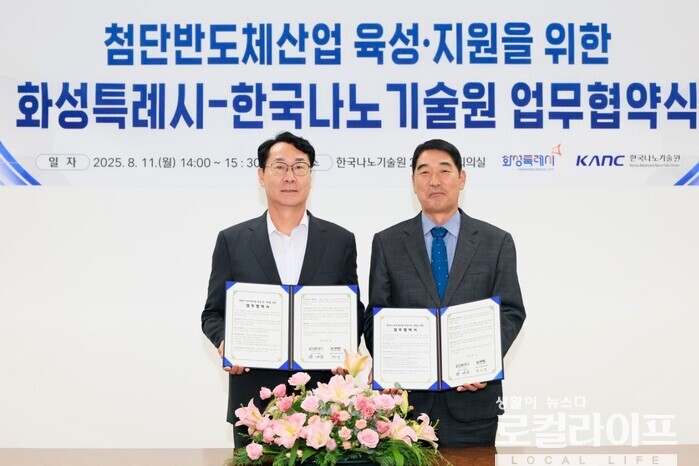 [화성=로컬라이프] 송준형 기자 = 화성특례시와 한국나노기술원은 11일, '첨단반도체산업 육성·지원을 위한 업무협약'을 체결했다.