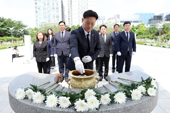 최종현 대표의원을 비롯한 대표단은 1일(월) 오전 인계동에 위치한 수원시 현충탑을 방문하여 헌화와 분향 등을 하면서 순국선열 앞에서 도민을 위한 후반기 교섭단체 운영에 대한 결의를 다졌다.