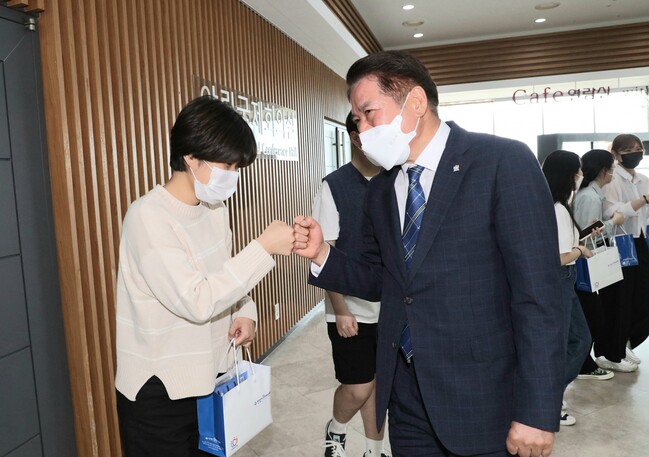 [로컬라이프] 최대호 안양시장은 13일 성결대 대학 일자리센터 취업준비생과 만남의 시간을 가졌다고 밝혔다.