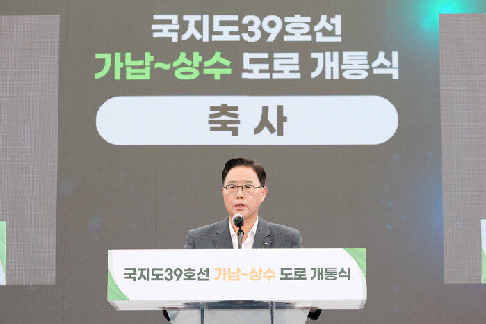강수현 양주시장이 2일 오전 ‘국지도 39호선 가납~상수 구간’ 전면 개통을 기념하는 개통식에 참석해 지역 간 연결성과 교통 여건을 개선하는 데 중요한 전환점이 될 것이라고 밝혔다.