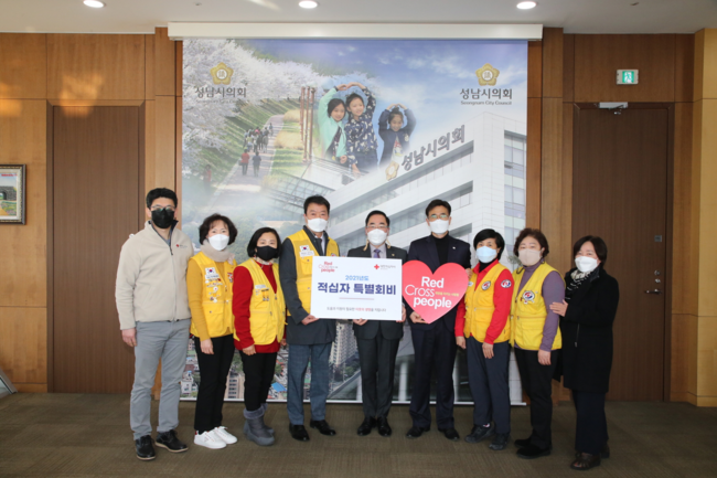 [로컬라이프] 성남시의회 윤창근 의장은 21일 대한적십자사 경기도지사에 특별회비를 전달하며 어려운 이웃들에게 온정의 손길이 닿기를 바랐다.