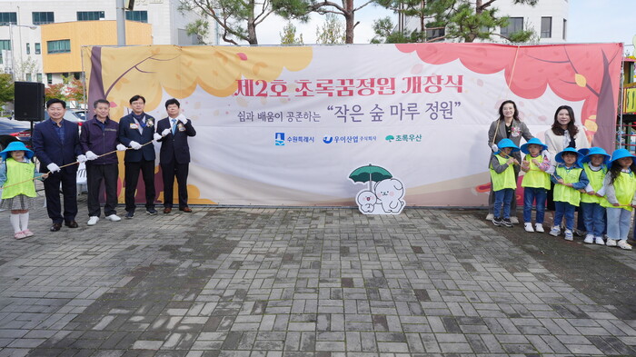 수원특례시(시장 이재준)와 초록우산어린이재단이 시립호매실어린이집에 제2호 초록꿈정원을 조성했다.