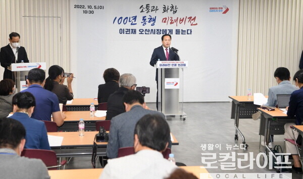 [오산=로컬라이프] 임현상 기자 = 이권재 오산시장은 취임 100일을 맞아 기자회견을 갖고 '민선 8기의 정책방향과 비전'에 대해 설명했다.