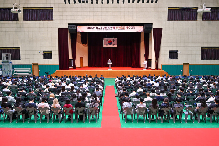 [양평=로컬라이프] 송준형 기자 = 전진선 양평군수는 21일, 물맑은양평체육관에서 열린 ‘2025년 참교육인상 시상식 및 장학증서 수여식’에 참석했다.