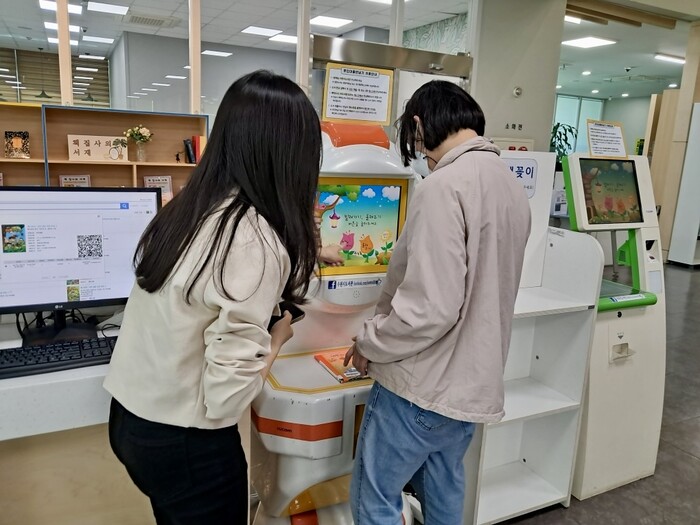 사진/무인대출기를 활용해 대출·반납실습을 하고 있다.(사진제공=수원시)