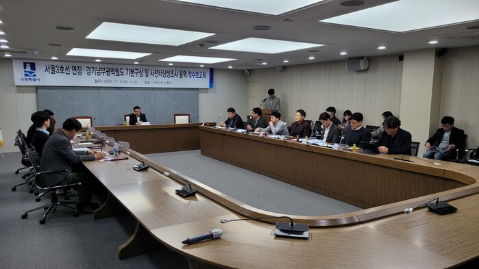 수원시가 9일 ‘서울 3호선 연장·경기남부광역철도 기본구상 및 사전타당성조사 용역’ 착수보고회를 열고, 공동추진기관, 관련 전문가와 함께 과업내용과 추진방향을 논의했다.