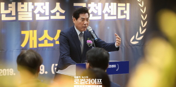 | ▲ 김상돈 의왕시장은 ‘일자리’와 ‘청년’에 집중한 정책을 입안하고 추진해 나간다는 계획이다. 사진은 김상돈 의왕시장이 지난 11월 29일, ‘의왕 청년발전소 고천센터’ 개소식에 참석해 인사말을 하는 모습. (사진제공=의왕시) |