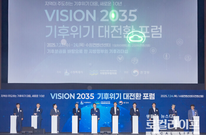 [수원=로컬라이프] 박봉민 기자 = 수원특례시와 '기후위기 대응·에너지전환 지방정부협의회'가 공동으로 주최하고 환경부가 후원하는 'VISION 2035 기후위기 대전환 포럼'이 "기후분권을 바탕으로 한 지방정부의 기후 리더십"을 주제로 23일과 24일 양일 간 수원컨벤션센터에서 개최됐다.