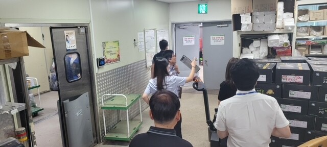 사진)합동 점검단이 9일 수원축산농협에서 안전관리 실태를 점검하고 있다.