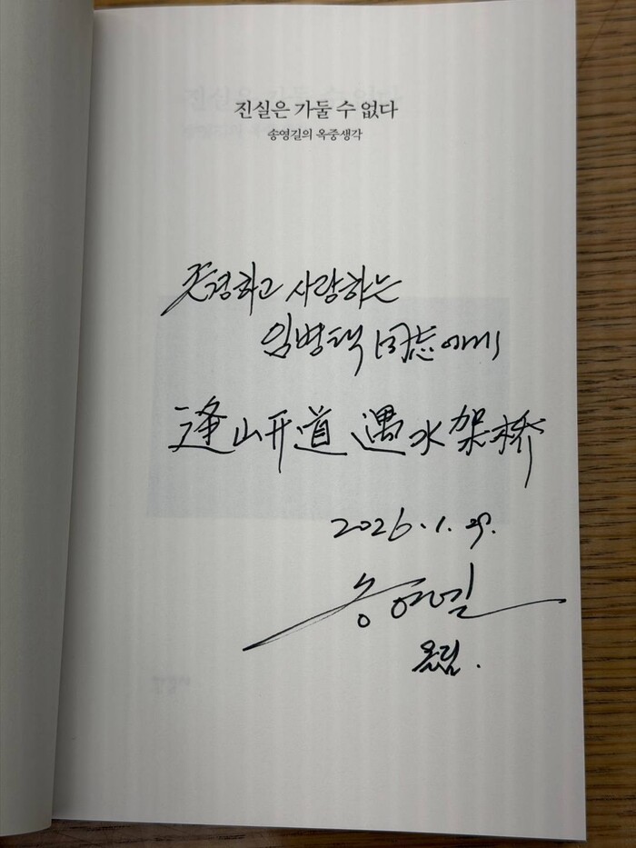 이어 "스스로의 힘으로 이제 고난의 멍에 벗어냈으니, 우리 이재명정부 성공과 한반도 평화를 위해 큰 역할 해주시길 기원한다"며 "한반도 백두산호랑이 송영길 대표의 명예로운 귀환을 환영한다"고 말했다.