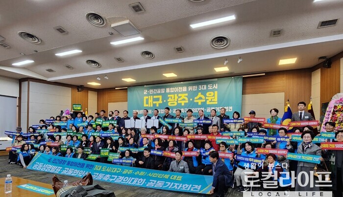 [수원=로컬라이프] 송준형 기자 = 수원특례시를 비롯한 대구광역시, 광주광역시 3대 도시 시민단체가 정부를 상대로 군공항 및 민간공항 통합이전 사업의 조속한 추진을 촉구하며 공동행동에 나섰다.