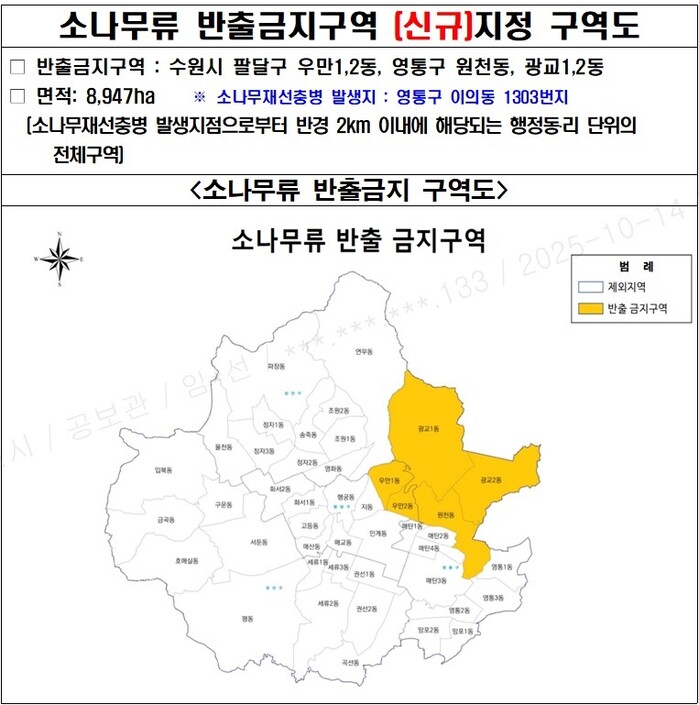 사진/소나무류 반출금지구역 지정 구역도(수원시 제공)