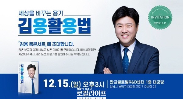 최근 ‘김용활용법, 세상을 바꾸는 용기’라는 제목의 저서를 펴낸 김용 전 대변인은 오는 15일 오후 3시 판교 글로벌R&D센터에서 북콘서트 형식의 출판기념회를 개최한다.