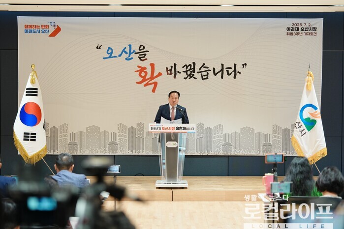 [오산=로컬라이프] 김도연 기자 = 이권재 오산시장은 민선8기 3주년을 맞아 기자회견을 갖고 지난 3년 간의 시정 성과를 공유하고, 남은 임기 시정 방향에 대해 설명했다.