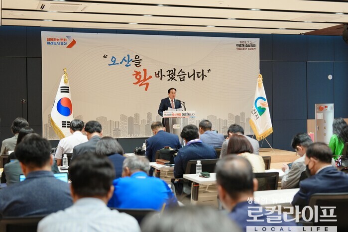 그러면서 ▲세교3지구 개발 ▲GTX-C 노선 오산 연장 및 KTX 오산역 정차, 도시철도 트램 건설 추진 ▲기반도체 특화 테크노밸리 조성을 비롯 기업들과 협업한 반도체 특화도시 추진 ▲첨단기술, 일자리, 주거가 연결되는 첨단산업 생태계 구축 ▲운암뜰에 청년문화거리, E-스포츠 구장, 마이스 산업 공간이 어우러진 첨단 복합문화지구 조성 ▲내삼미동 유휴지와 (구)계성제지 부지 역세권 개발 혁신 프로젝트로 진행 ▲세교1지구 터미널 부지의 랜드마크화 ▲오산도시공사 출범 등 현재 추진 중인 주요 사업들에 대해 설명했다.