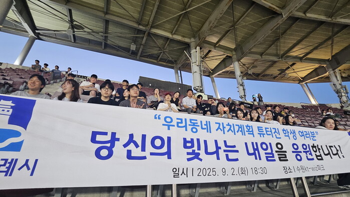 수원시(시장 이재준)는 2일 수원 KT위즈파크에서 자치계획 수립지원단 대학생을 대상으로 프로야구 경기 관람을 지원했다.