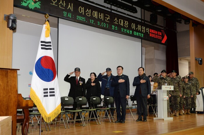 [오산=로컬라이프] 송준형 기자 = 오산시 여성예비군 소대장 이·취임식을 가졌다.