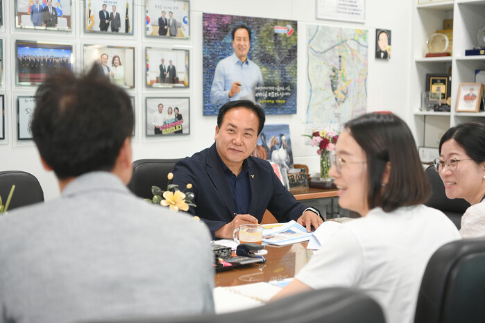 [오산=로컬라이프] 송준형 기자 = 이권재 오산시장은 10일, 2025년 경기도 세외수입 연구발표대회 대상 수상을 한 우리 공직자들을 집무실로 초대해 격려의 마음도 전하고 직접 담당업무 이야기도 들어봤다.