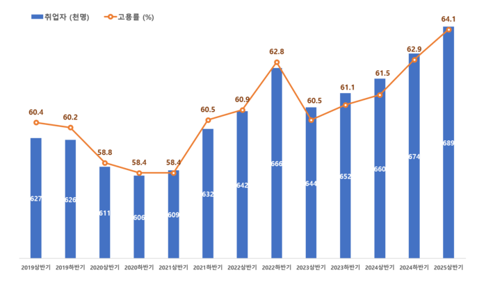 사진/2019년 상반기~2025년 상반기 수원시 고용률 추이.(수원시 제공)