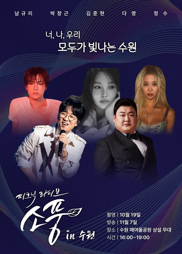 이와 관련해 최종현 경기도의원(더불어민주당 대표의원)은 18일, 자신의 페이스북을 통해 ‘피크닉라이브 소풍’ 수원편은 수원의 문화와 역사, 그리고 정체성을 담아 무대 위의 아티스트와 참여하는 모든 시민이 ‘서로의 빛’을 나누는 소통의 축제라고 밝혔다.