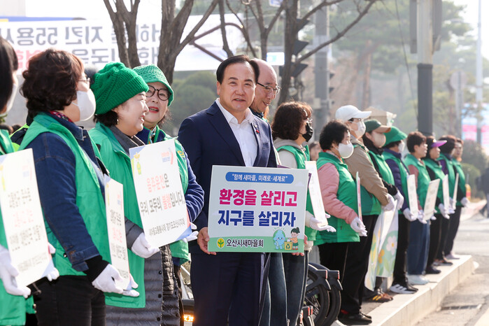 [오산=로컬라이프] 송준형 기자 = 이권재 오산시장은 25일, 완연한 봄기운이 느껴지는 아침, 새마을교통봉사대 · 새마을부녀회와 함께 교통안전 · 환경보호를 위한 합동 캠페인을 진행했다.