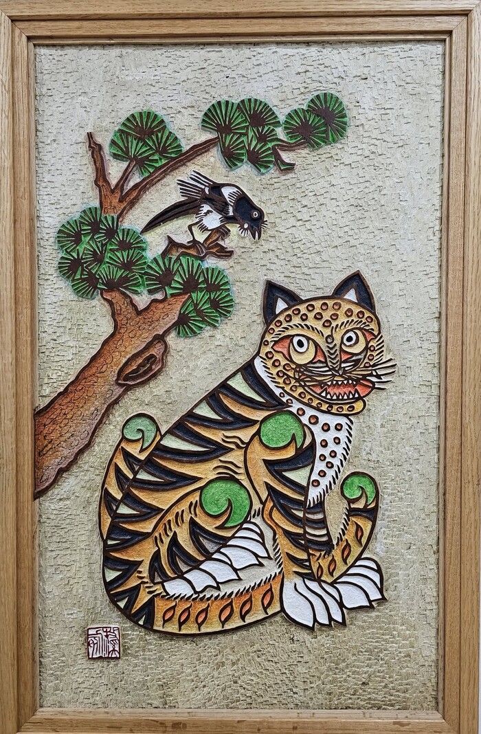 호랑이 서각 작품이다. 평택의 자랑인 경기무형문화재 이규남 서각장의 작품이다”라고 소개했다.