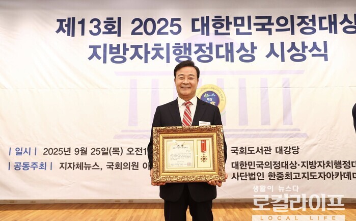 [의왕=로컬라이프] 송준형 기자 = 김성제 의왕시장이 '제13회 대한민국 의정대상·2025 지방자치행정대상 시상식'에서 '지방자치 행정대상'을 수상했다.