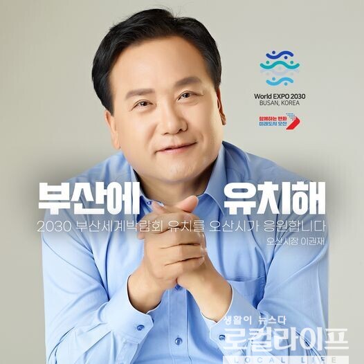 [오산=로컬라이프] 송준형 기자 = 이권재 오산시장이 ‘2030 부산 세계박람회’ 유치에 힘을 보탰다.