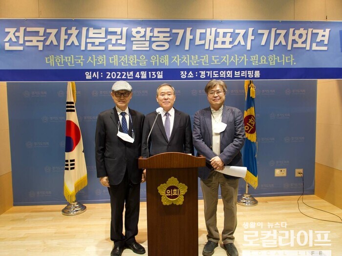 [경기=로컬라이프] 송준형 기자 = 전국자치분권 활동가 대표자들이 오는 6월 지방선거에서 경기도지사로 염태영 더불어민주당 예비후보 지지를 선언했다.