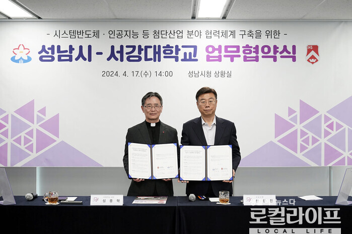 [성남=로컬라이프] 송준형 기자 = 성남시는 지난 17일, 서강대학교와 ‘시스템반도체·인공지능 등 첨단산업 분야 협력체계 구축을 위한 업무협약’을 체결했다.