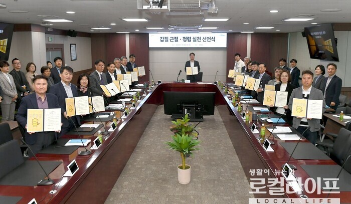 [화성=로컬라이프] 송준형 기자 = 화성시는 18일, 국장단 이상 직원들이 참석한 가운데 ‘갑질 근절·청렴 실천 선언식’을 가졌다.
