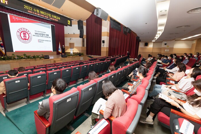 사진/ 20일 시청 대강당에서 열린 ‘수원 마이스(MICE) 산업 이해 교육’(사진제공=수원시)