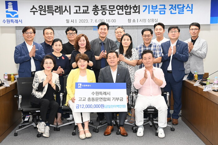 수원특례시 고교 총동문연합회가 “관내 12개 고등학교에 지역사회 인재 양성을 위한 장학금으로 전달해 달라”며 수원시에 1200만 원을 기탁했다.