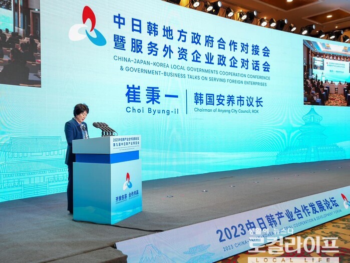 | ▲ 최병일 안양시의회 의장이 중국 웨이팡시에서 열린 ‘제9회 한중일 국제 산업박람회’에 참석해 축하를 하고 있다. (사진출처=최병일 페이스북) |