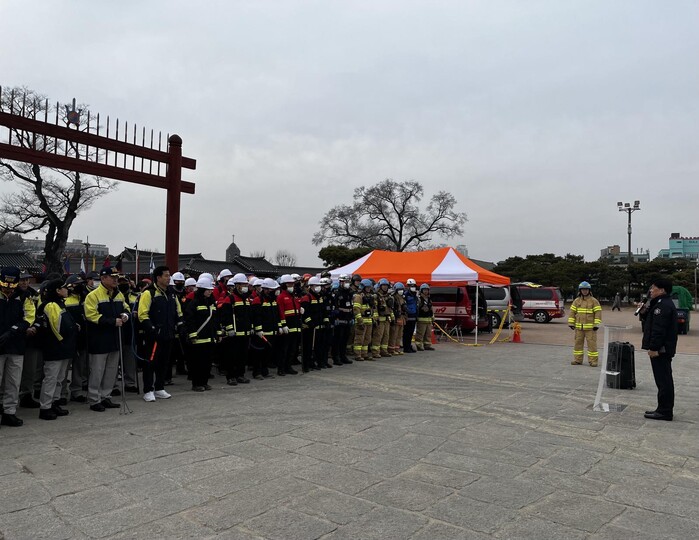 사진/목조문화재 민관 합동소방 훈련을 하는 모습(사진제공=수원시)