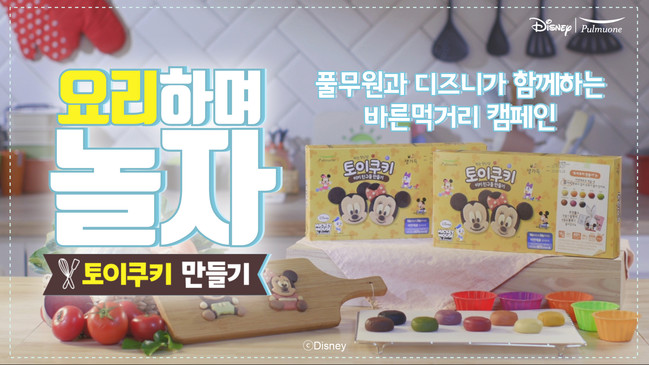 이 캠페인 영상에 등장하는 ‘토이쿠키 미키친구들 만들기’는 풀무원과 디즈니가 협업해 출시한 첫 번째 제품이다. ‘토이쿠키’는 아이들이 천연재료로 색을 낸 쿠키 반죽을 점토처럼 가지고 놀며 직접 여러가지 모양의 쿠키를 만들 수 있는 에듀테인먼트(Edutainment) 제품이다.