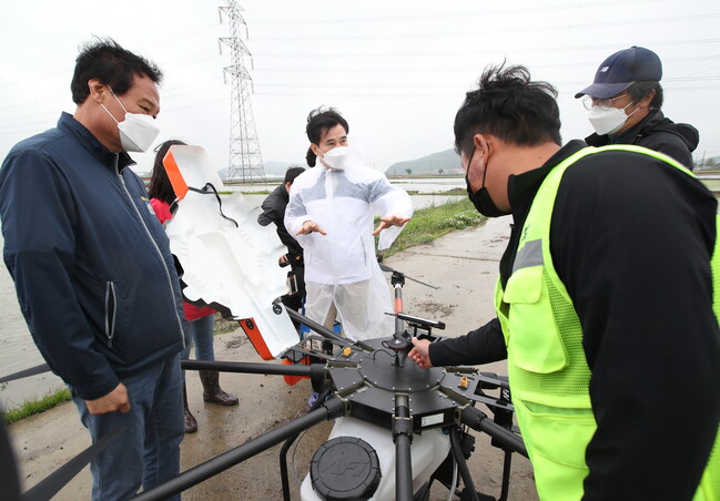 서 시장은 이날 자신의 페이스북을 통해 4차 산업혁명 시대의 신기술이 산업 현장에 적용되면서 인구 감소와 고령화 등 농업 현장의 인력난이 심각한 가운데서도 인력과 비용을 획기적으로 줄일 수 있다며, 특히 무인드론 직파 신기술의 도입으로 농촌의 풍경을 바꾸고 있다고 전했다.