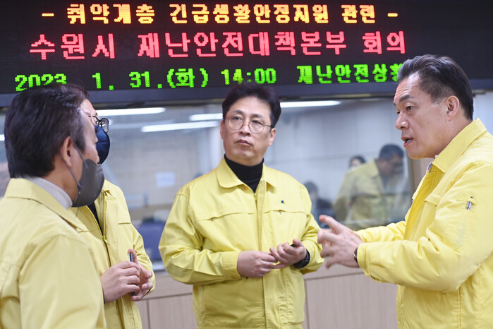 수원시는 1월 31일 시청 재난안전상황실에서 이재준 수원특례시장 주재로 ‘취약계층 긴급생활지원 관련 수원시 재난안전대책본부 회의’를 열고, ‘수원시 취약계층 긴급생활안정 지원 대상자 결정안’을 심의·의결했다.